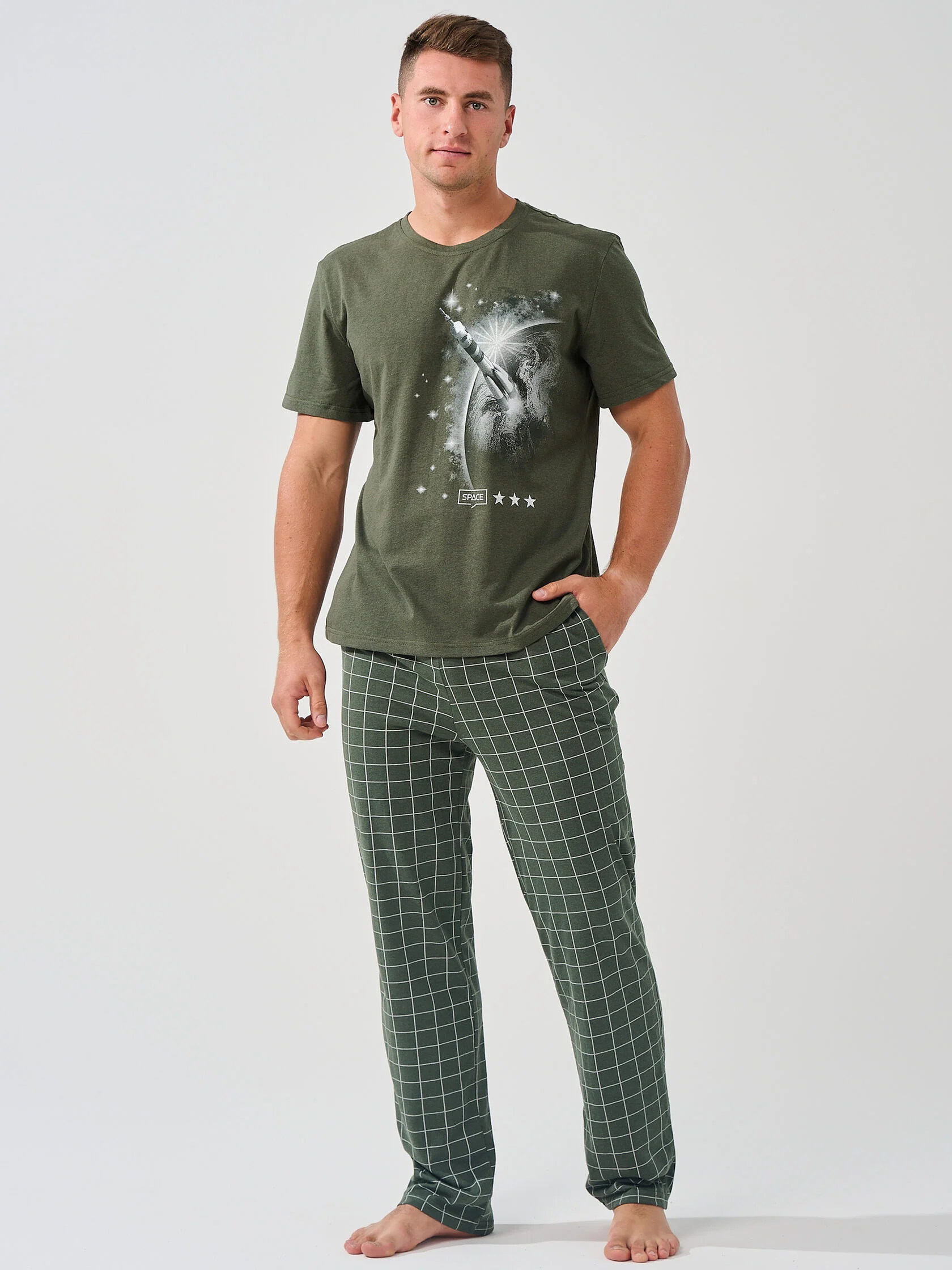 Погрузитесь в бескрайний космос комфорта каждую ночь! В пижаме от бренда «ОПТИМА ТРИКОТАЖ» вы почувствуете себя настоящим астронавтом стиля и уюта. Сделана в России из приятной смеси хлопка и полиэстера, эта пижама подарит ощущение нежности и свободы движений. Оттенок хаки добавит загадочности вашему ночному гардеробу. Изумительное сочетание качества и удобства – ваш личный космический корабль для сладких снов!