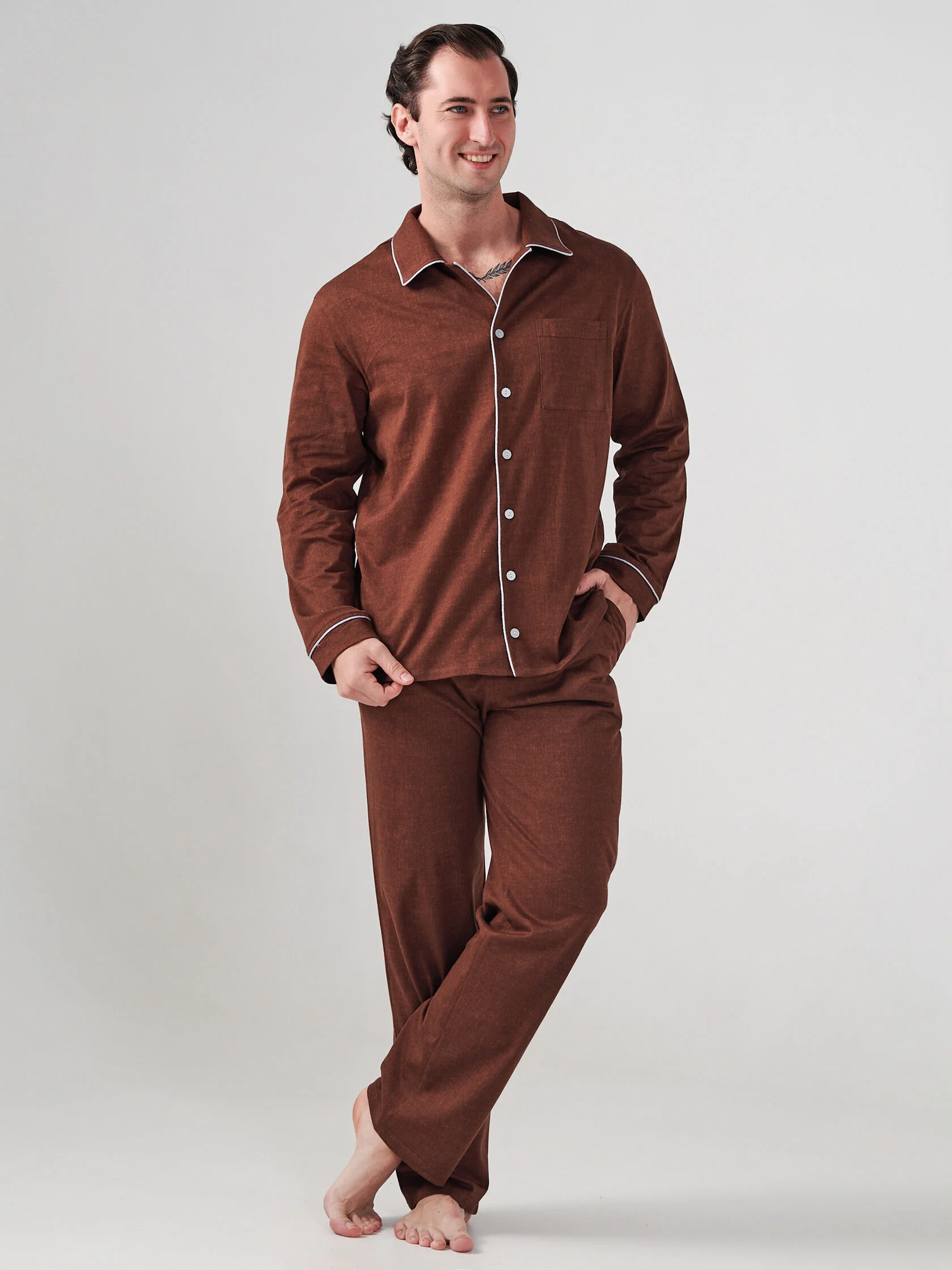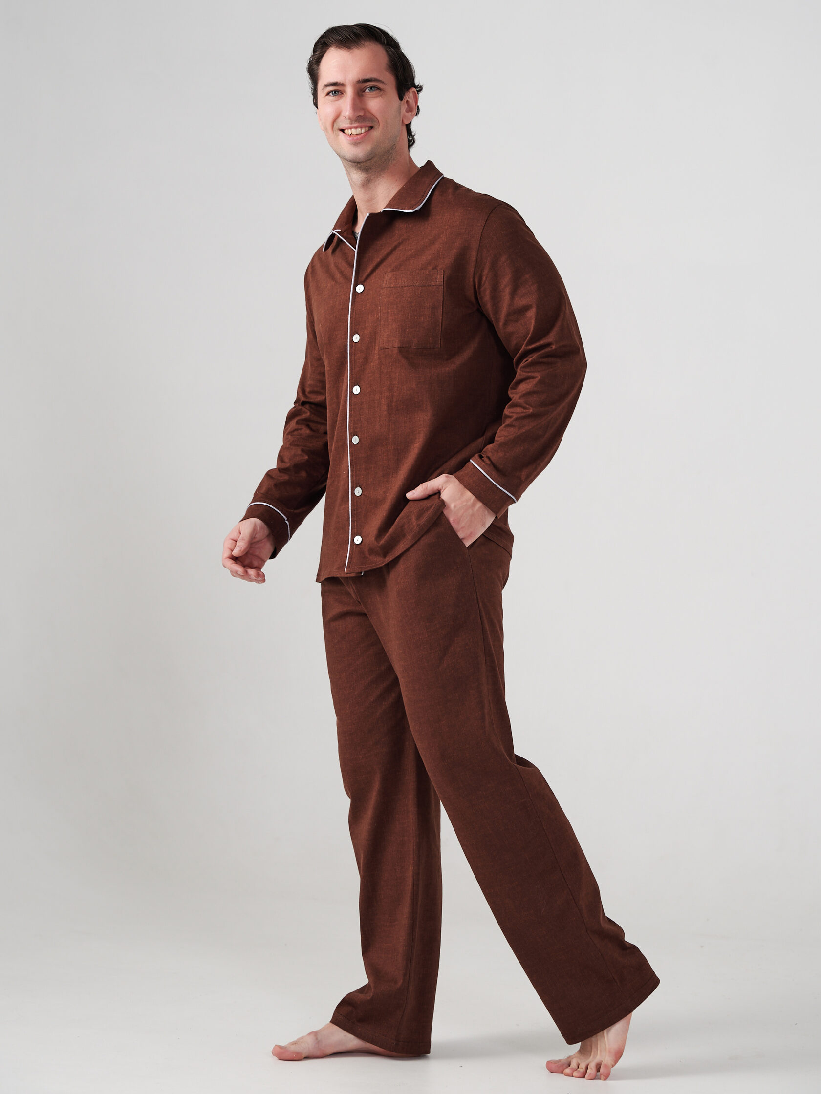 Мужская пижама классическая от бренда ОПТИМА ТРИКОТАЖ — комфорт и стиль в одном изделии. Изготовлена из 100%-го хлопка в России, что гарантирует высокое качество и безопасность материала. Коричневый цвет универсален и легко сочетается с любым интерьером. Удобная классика дизайна подчеркнет хороший вкус владельца. Идеальный выбор для приятного отдыха дома!