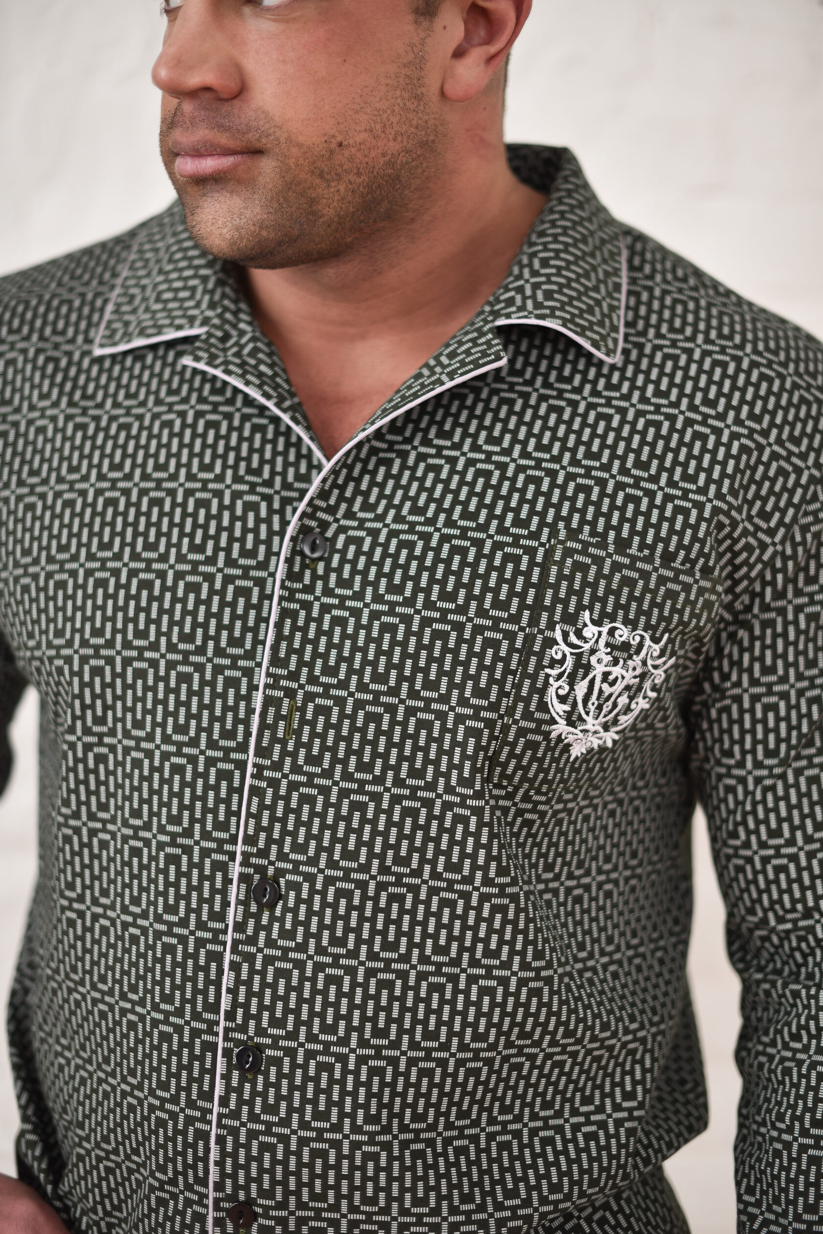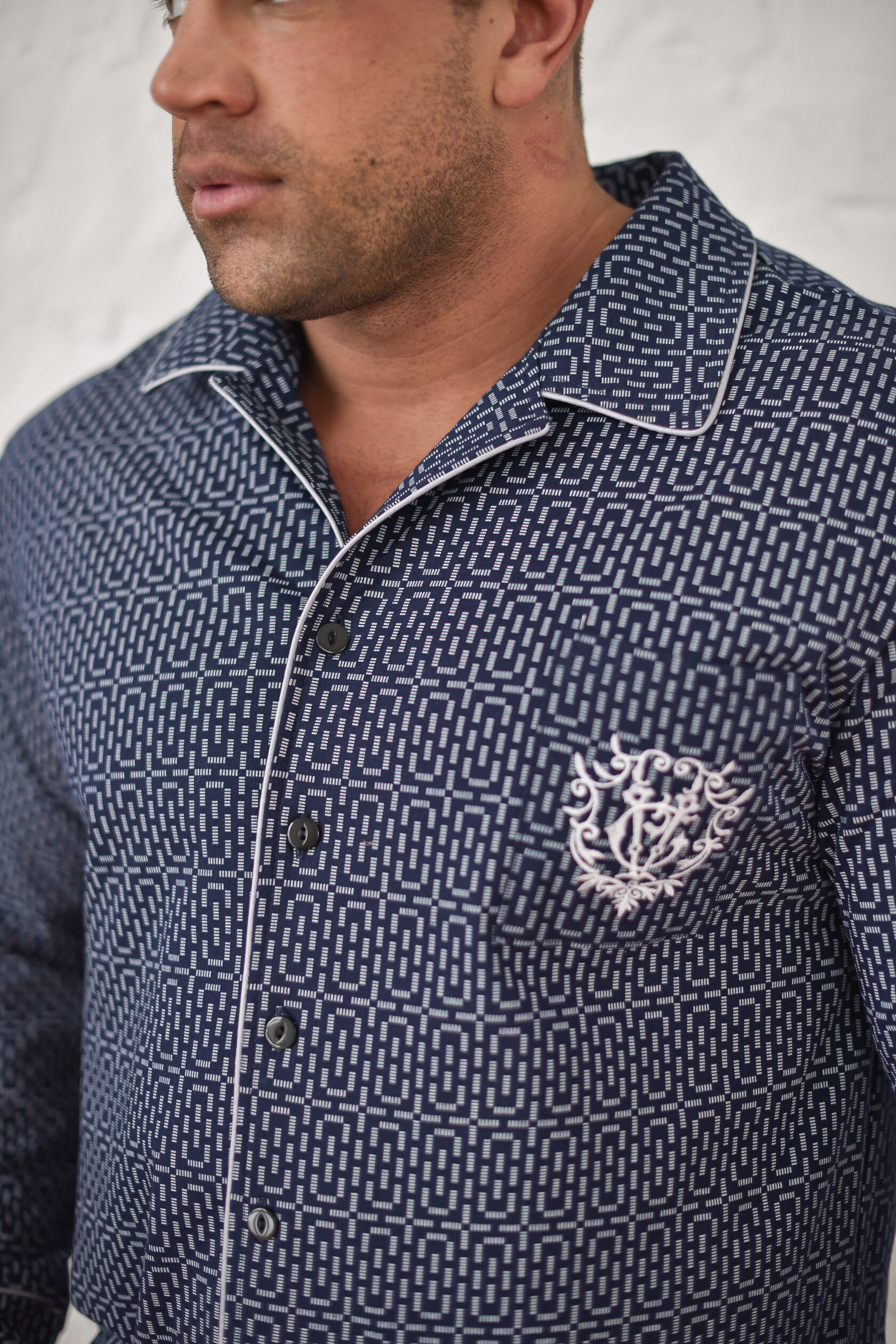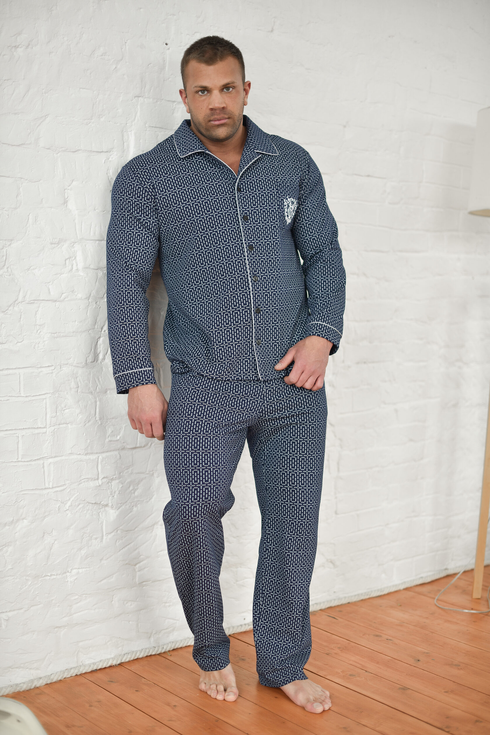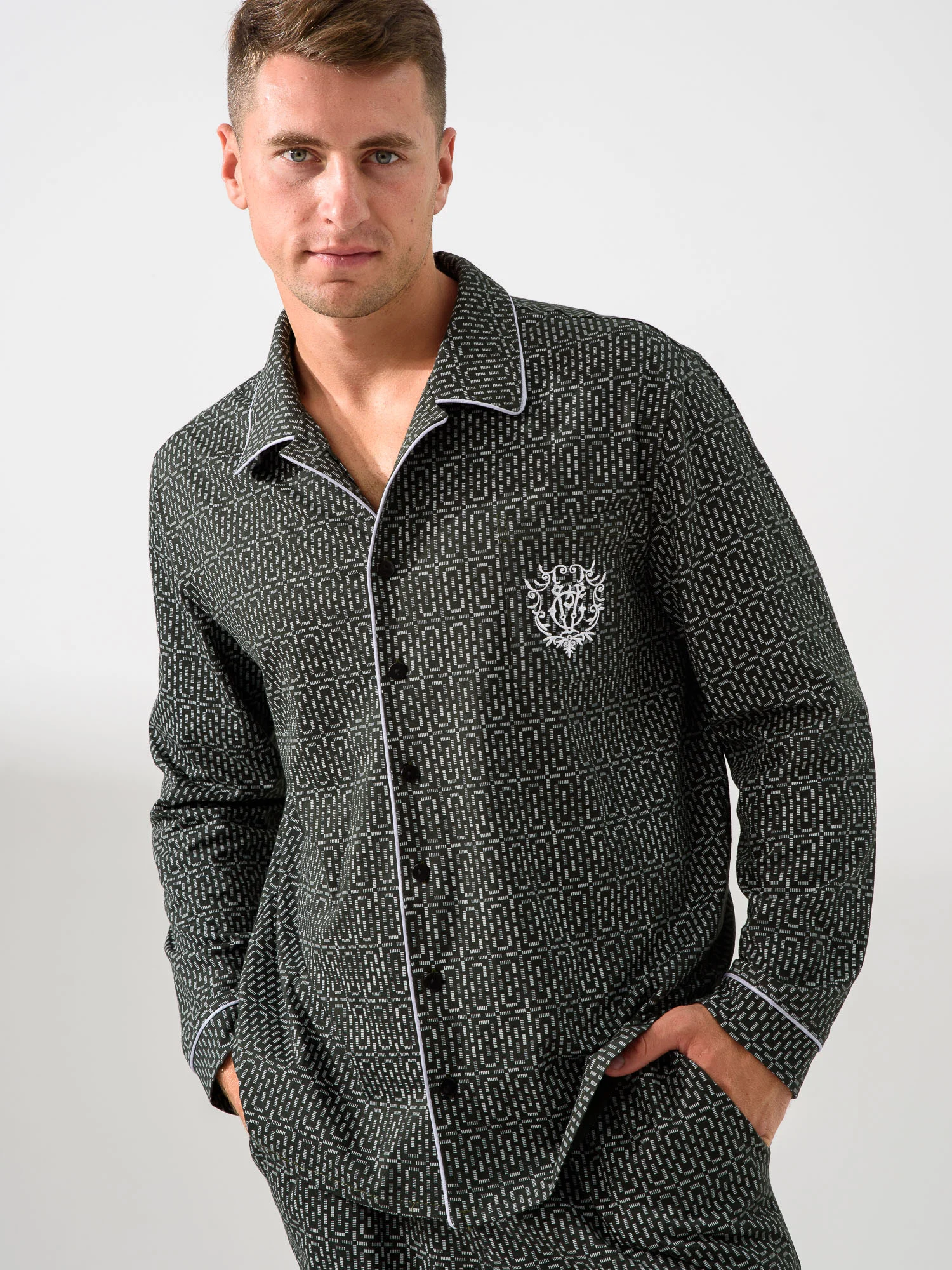 Мужская пижама — отличный выбор для домашней одежды. Удобный и функциональный наряд для мужчин разного роста и размера, крупных, худых, высоких, низких, среднего роста. Подойдет для взрослых мужчин и подростков. Комплект состоит из рубашки и брюк. Рубашка прямого кроя на пуговицах с накладным карманом и стильной вышивкой. Воротник в классическом стиле. Пижама напоминает офисный костюм. На рукавах есть манжеты, декорированные контрастным кантом. Брюки средней посадки прямого кроя с двумя глубокими и вместительными прорезными карманами по бокам. Пояс на резинке, брюки не спадают и не врезаются в живот. Свободный покрой для мужчин с животиком. Пижама сшита из 100% хлопка. Плотная ткань хорошо держит форму, не выцветает после стирок, не растягивается, не электризуется и не скатывается. Материал гипоаллергенный и не вызывает раздражение на коже. Пижама легкая и приятная на ощупь. Не сковывает движения, в такой удобно спать и делать домашние дела. Продольная полоска визуально вытягивает силуэт и скрывает недостатки фигуры. Дышащий материал пижамного комплекта позволит комфортно спать в жару и не даст замерзнуть зимними ночами. В пижаме  можно не только спать, но и ходить по дому, как в домашней одежде. В такой не стыдно даже встречать гостей. Отличный подарок для тех, кто ценит комфорт, стиль и удобство. Подарок на новый год, на 23 февраля, на день влюбленных, на день рождения, на годовщину, на рождество, на праздник. Идея наряда для пижамной вечеринки. Разрешена машинная стирка на деликатном режиме при температуре 30°C. Качество швов и отстрочка проверена службой контроля . Произведено в России.