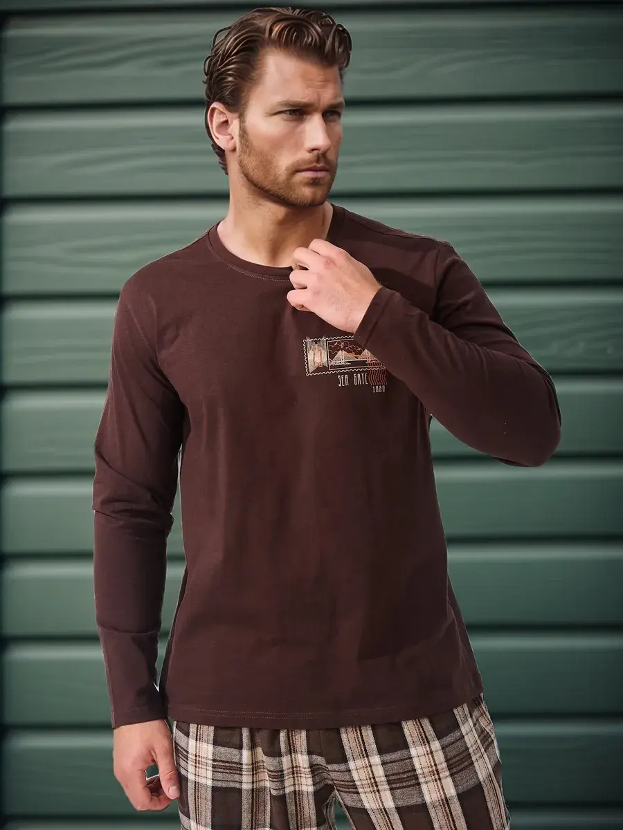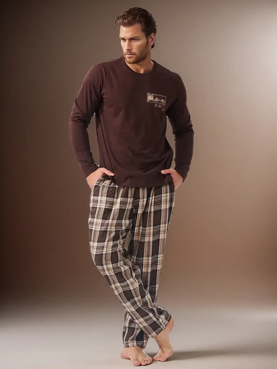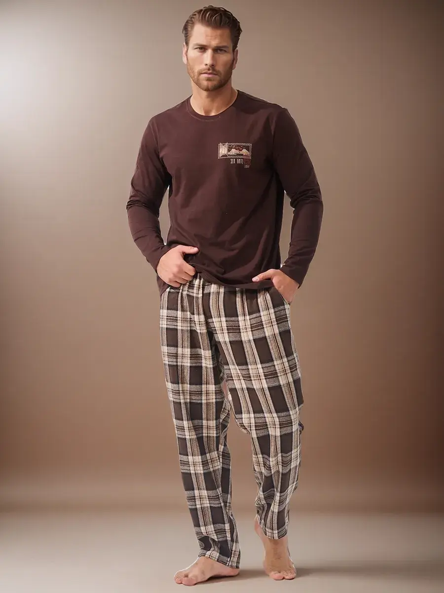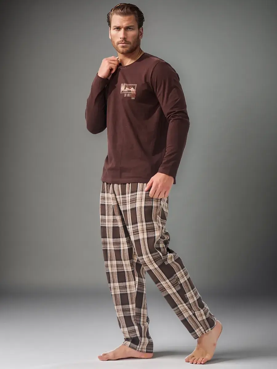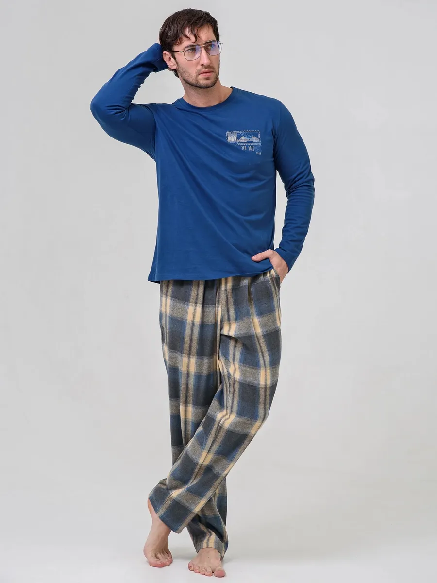 Представляем вашему вниманию пижаму мужскую со штанами и футболкой с длинным рукавом - идеальный выбор для молодых парней и мужчин постарше, которые ценят уют и комфорт в каждом своем дне. Мужская пижама комплект обладает всеми необходимыми качествами, чтобы обеспечить приятный отдых и хороший сон. Эта пижама изготовлена из мягкой 100% хлопковой ткани ( трикотажное полотно ), что обеспечивает приятное ощущение на коже и хорошую вентиляцию. Штаны широкие с высокой посадкой, мягкой эластичной резинкой и удобными карманами. Лонгслив прямого кроя , удобной длины, которую легко заправить или носить навыпуск. Пижама мужская со штанами отлично подойдет для холодного времени года. В нашем магазине представлены разнообразные мужские домашние костюмы: клетчатые пижамы, в полоску, с новогодним принтом. Благодаря своему дизайну и качественным материалам, эта пижама мужская идеально подойдет тем, кто ценит стиль и комфорт в одном. Мужской домашний комплект с брюками - отличный подарок мужчине, отцу, мужу, парню на День рождения, на Новый год, на 23 Февраля, на праздник.