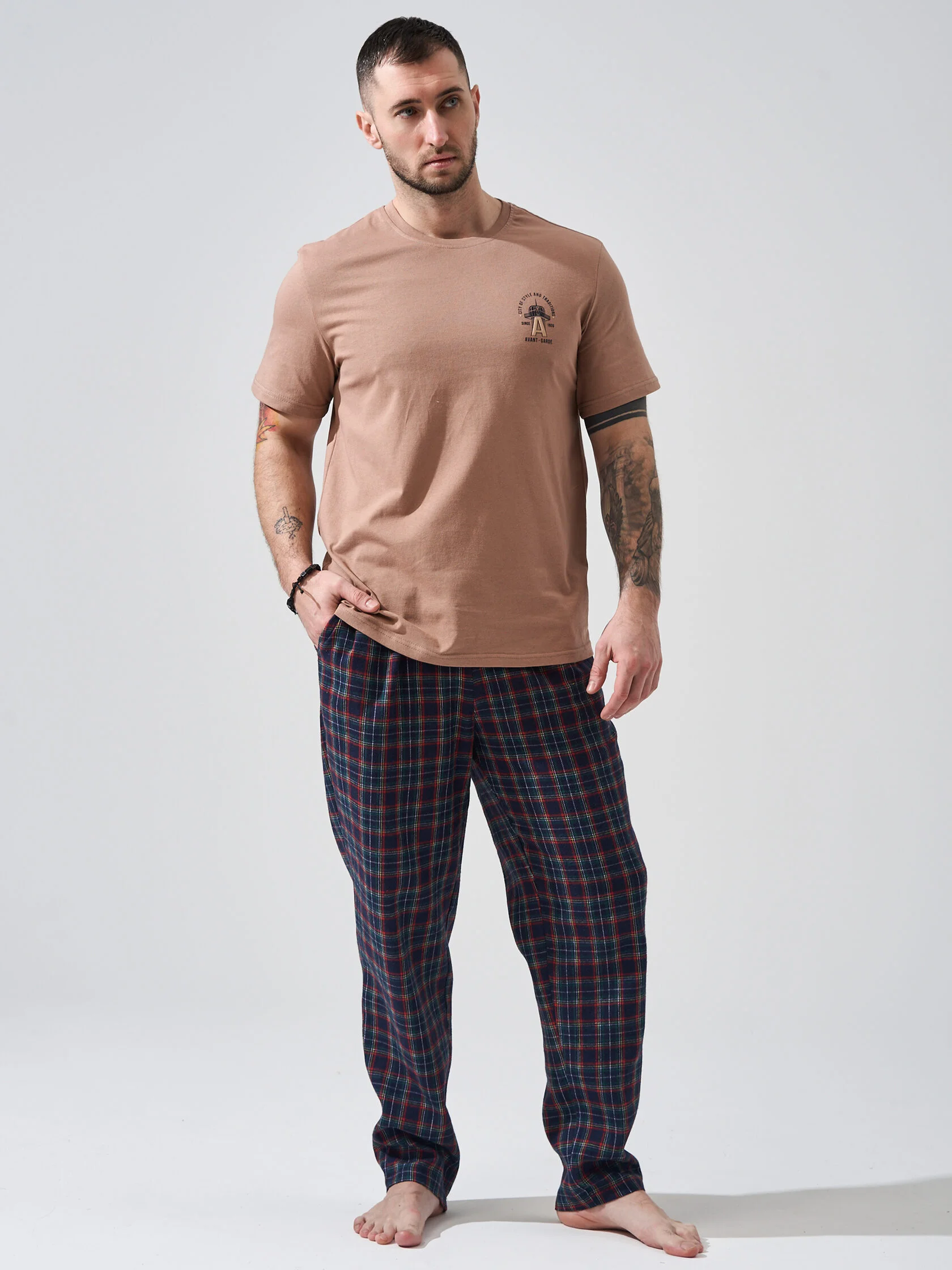 Представляем вашему вниманию пижаму мужскую со штанами и футболкой - идеальный выбор для молодых парней и мужчин постарше, которые ценят уют и комфорт в каждом своем дне. Мужская пижама комплект обладает всеми необходимыми качествами, чтобы обеспечить приятный отдых и хороший сон. Эта пижама изготовлена из мягкой 100% хлопковой ткани ( трикотажное полотно ), что обеспечивает приятное ощущение на коже и хорошую вентиляцию. Штаны широкие с высокой посадкой, мягкой эластичной резинкой и удобными карманами. Футболка прямого кроя , удобной длины, которую легко заправить или носить навыпуск. Пижама мужская со штанами отлично подойдет для холодного времени года. В нашем магазине представлены разнообразные мужские домашние костюмы: клетчатые пижамы, в полоску, с новогодним принтом. Благодаря своему дизайну и качественным материалам, эта пижама мужская идеально подойдет тем, кто ценит стиль и комфорт в одном. Мужской домашний комплект с брюками - отличный подарок мужчине, отцу, мужу, парню на День рождения, на Новый год, на 23 Февраля, на праздник.