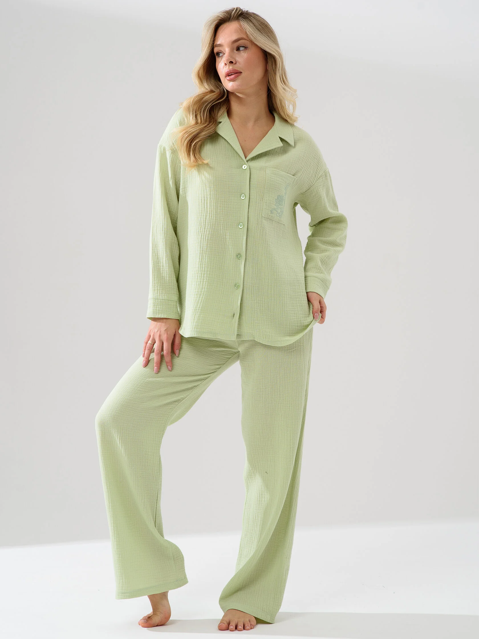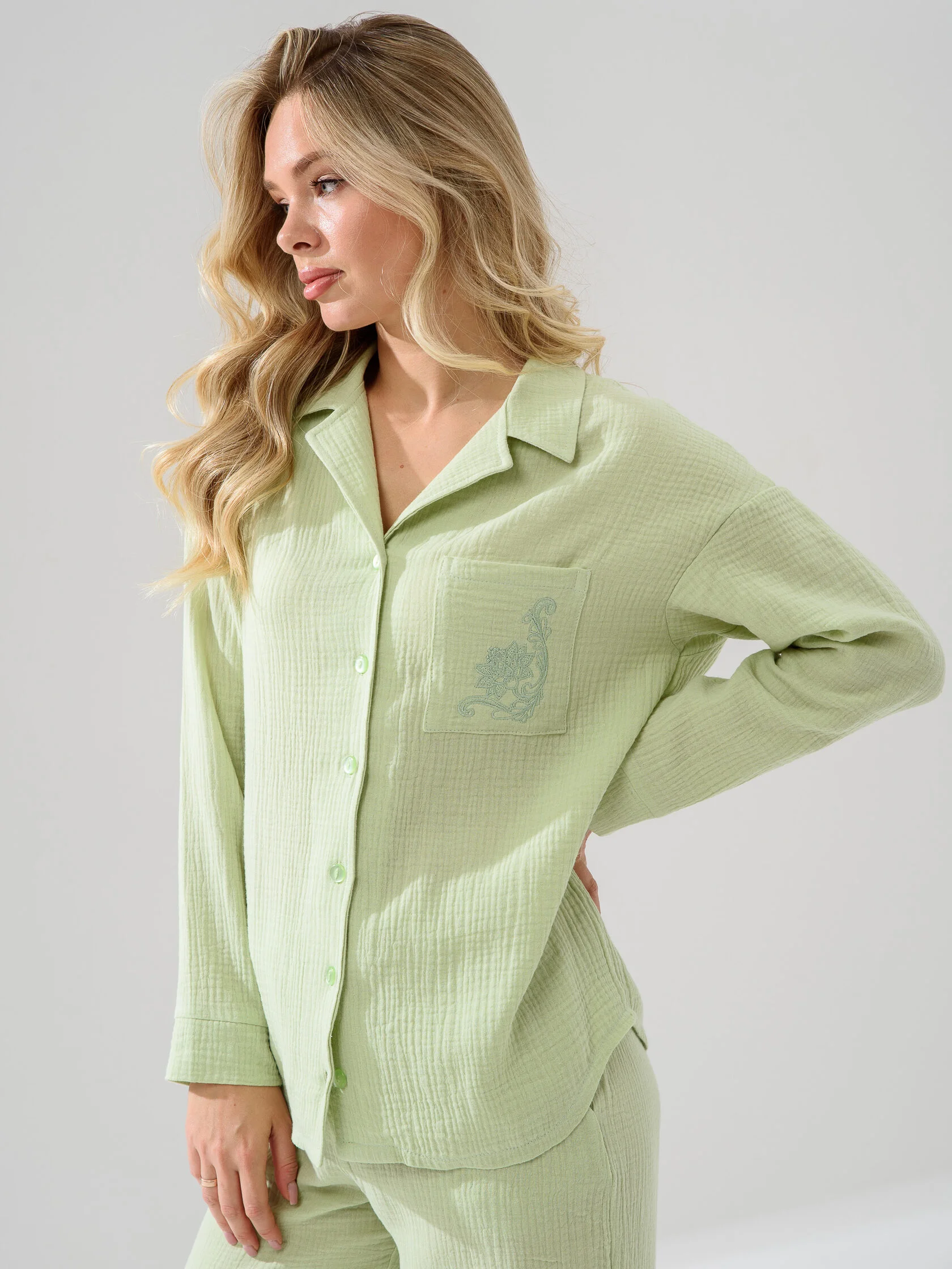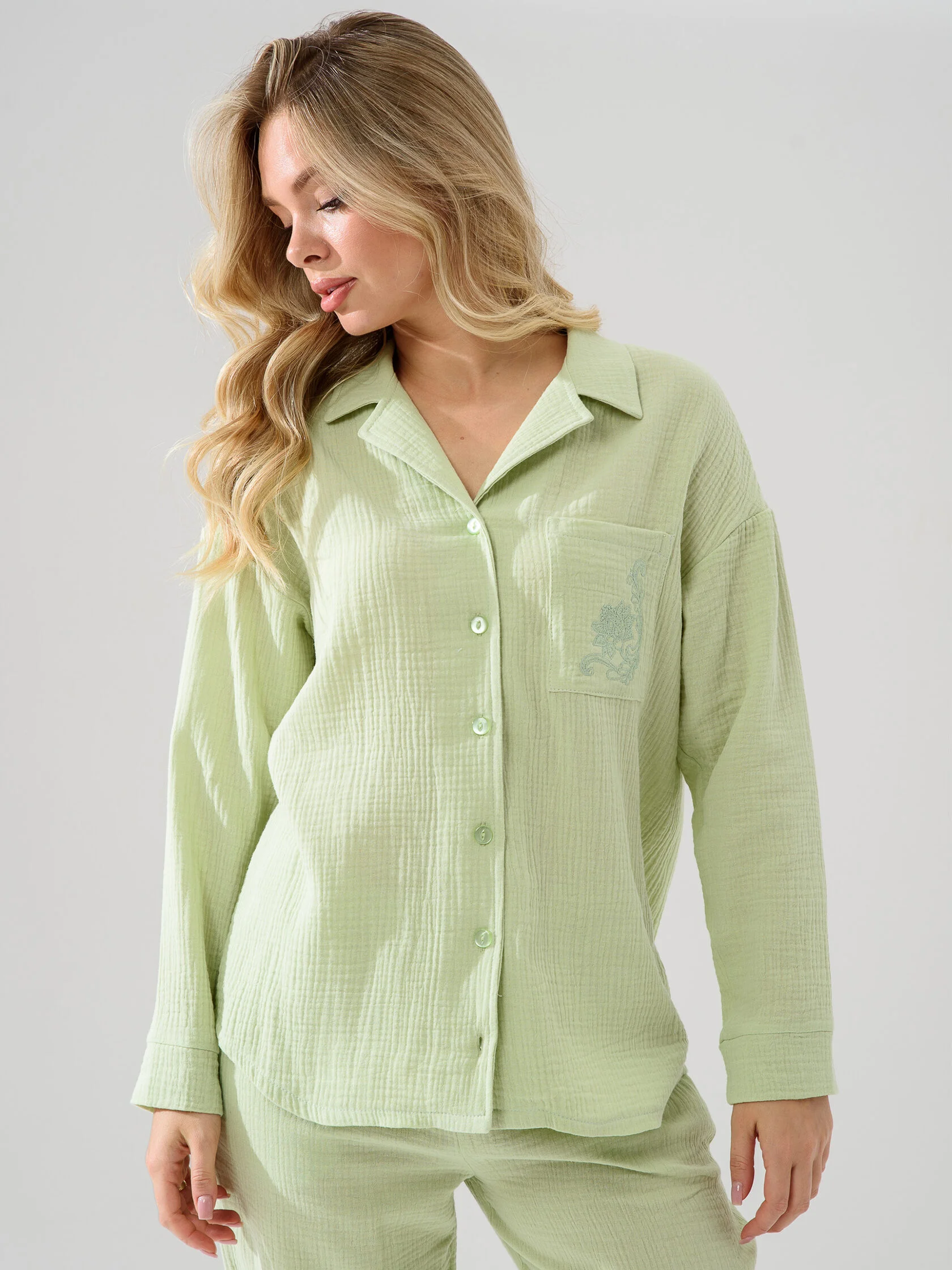 Погрузитесь в нежность ночи вместе с женской пижамой «Муслин» от бренда ОПТИМА ТРИКОТАЖ! Сделана из мягкого хлопка (100%), произведённого в России, эта зеленая пижама подарит комфортный отдых, сохраняя прохладу летом и тепло зимой. Уютная и стильная — она станет вашим любимым спутником сладких сновидений!