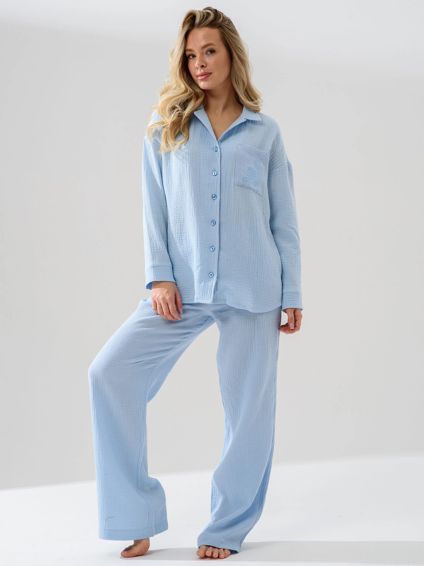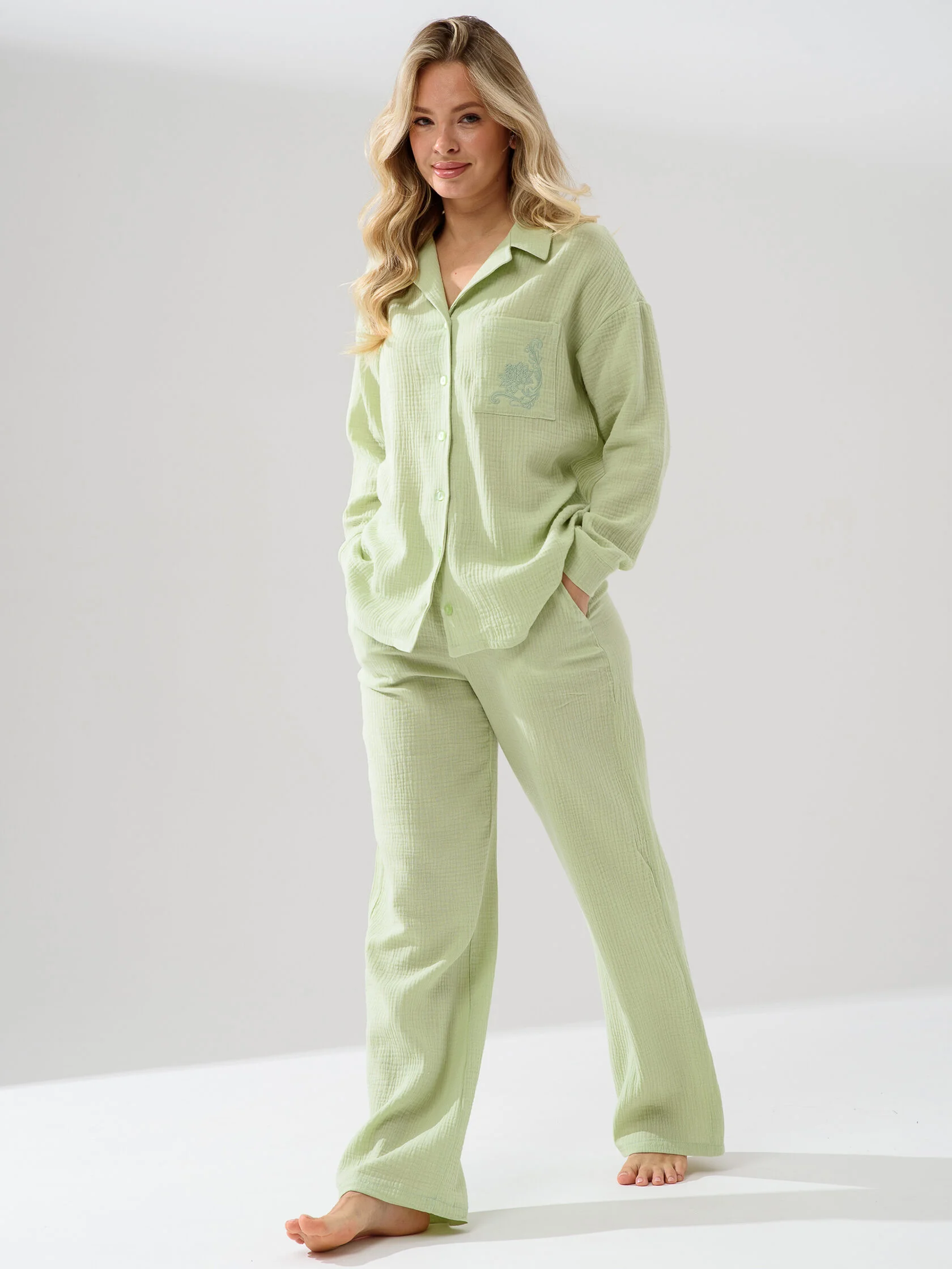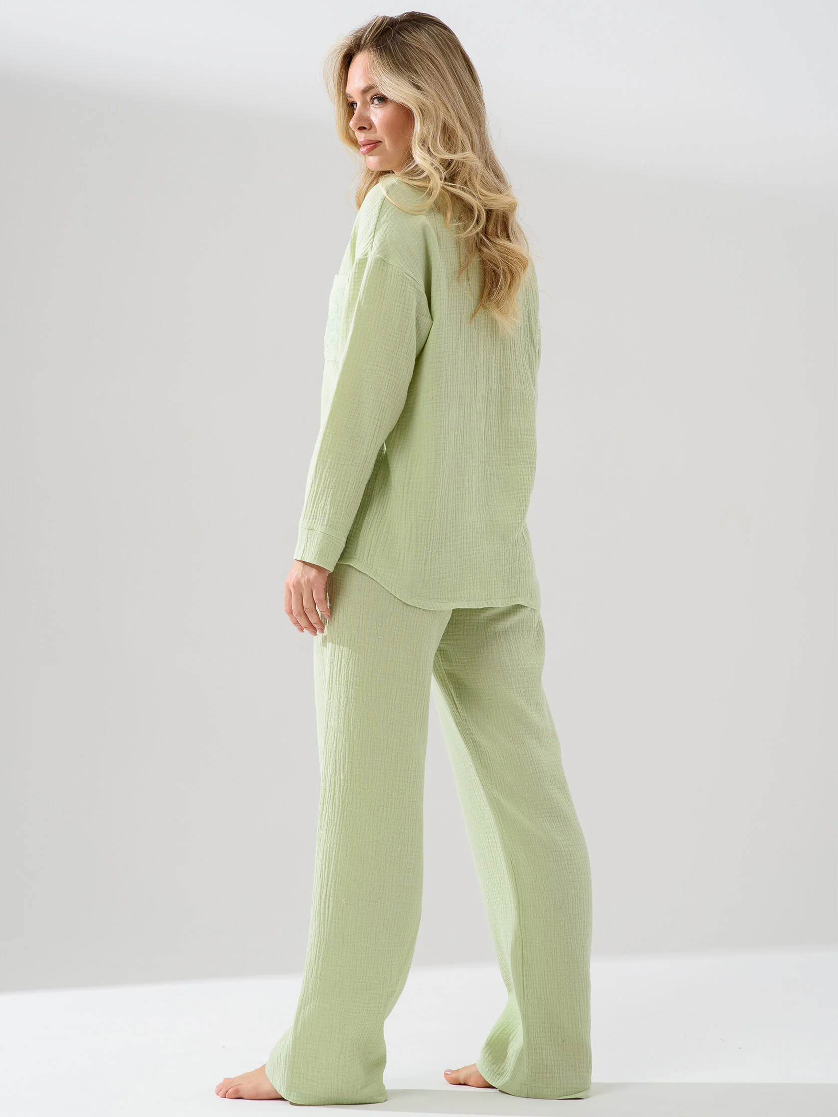 Погрузитесь в нежность ночи вместе с женской пижамой «Муслин» от бренда ОПТИМА ТРИКОТАЖ! Сделана из мягкого хлопка (100%), произведённого в России, эта зеленая пижама подарит комфортный отдых, сохраняя прохладу летом и тепло зимой. Уютная и стильная — она станет вашим любимым спутником сладких сновидений!