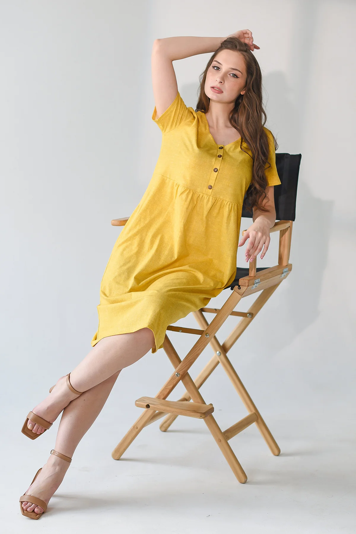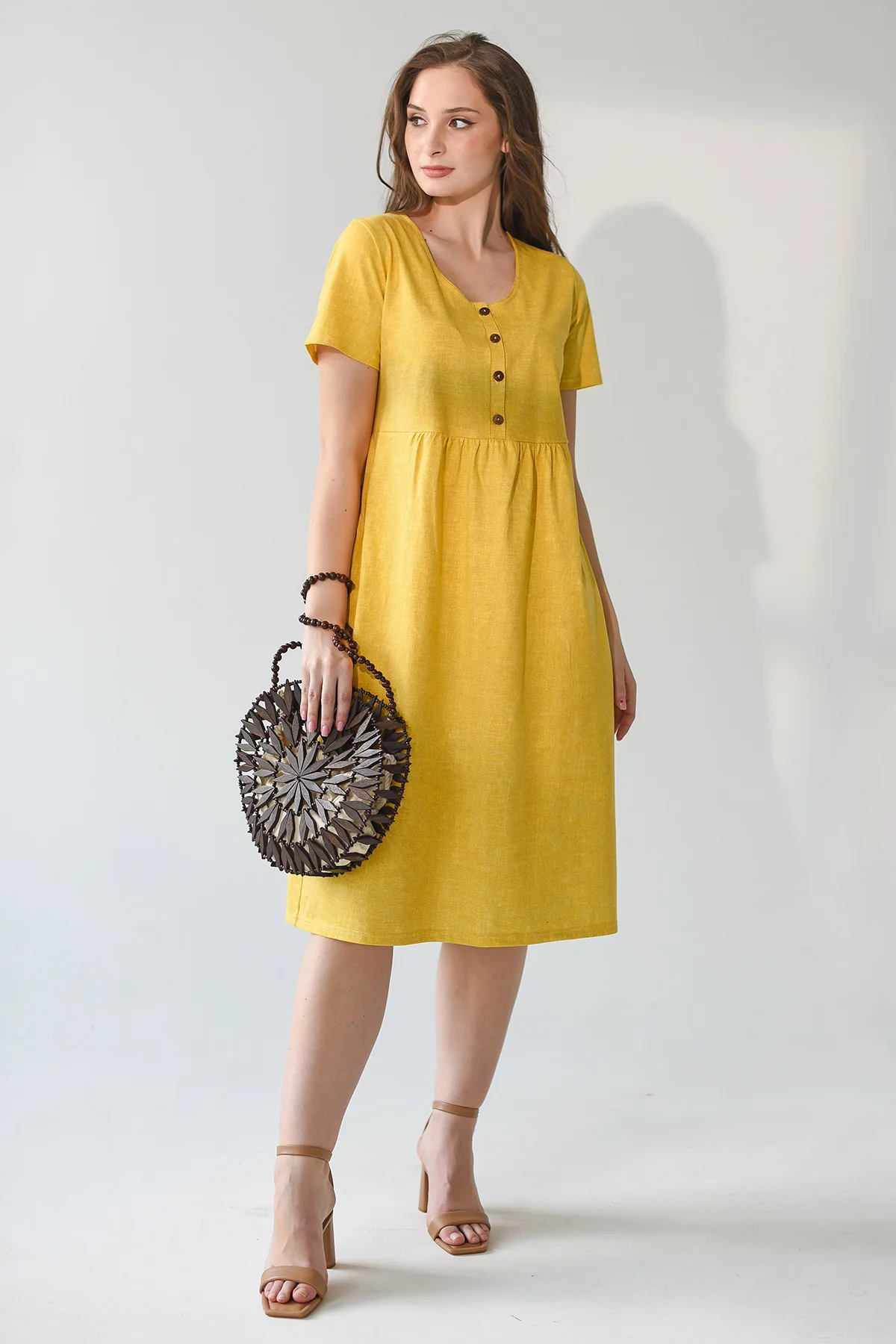 Платье "Июль" от бренда ОПТИМА ТРИКОТАЖ — это солнечный всплеск вашего настроения! Яркий жёлтый цвет мгновенно поднимет вам настроение даже в пасмурный день, а комфорт 100%-го хлопка подарит свободу движений и ощущение второй кожи. Сделано в России с любовью к деталям. Идеально подойдёт как для прогулок по городу, так и для яркого выхода в свет! Выбирайте радость вместе с платьем "Июль"!