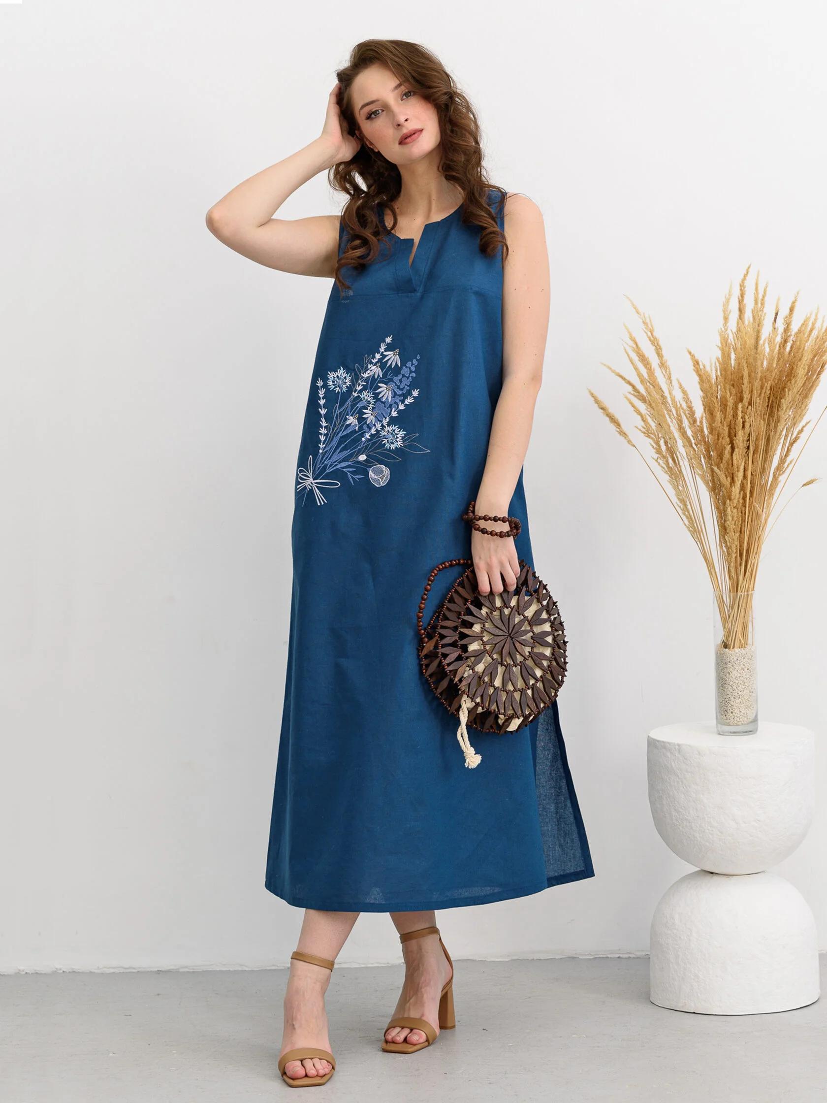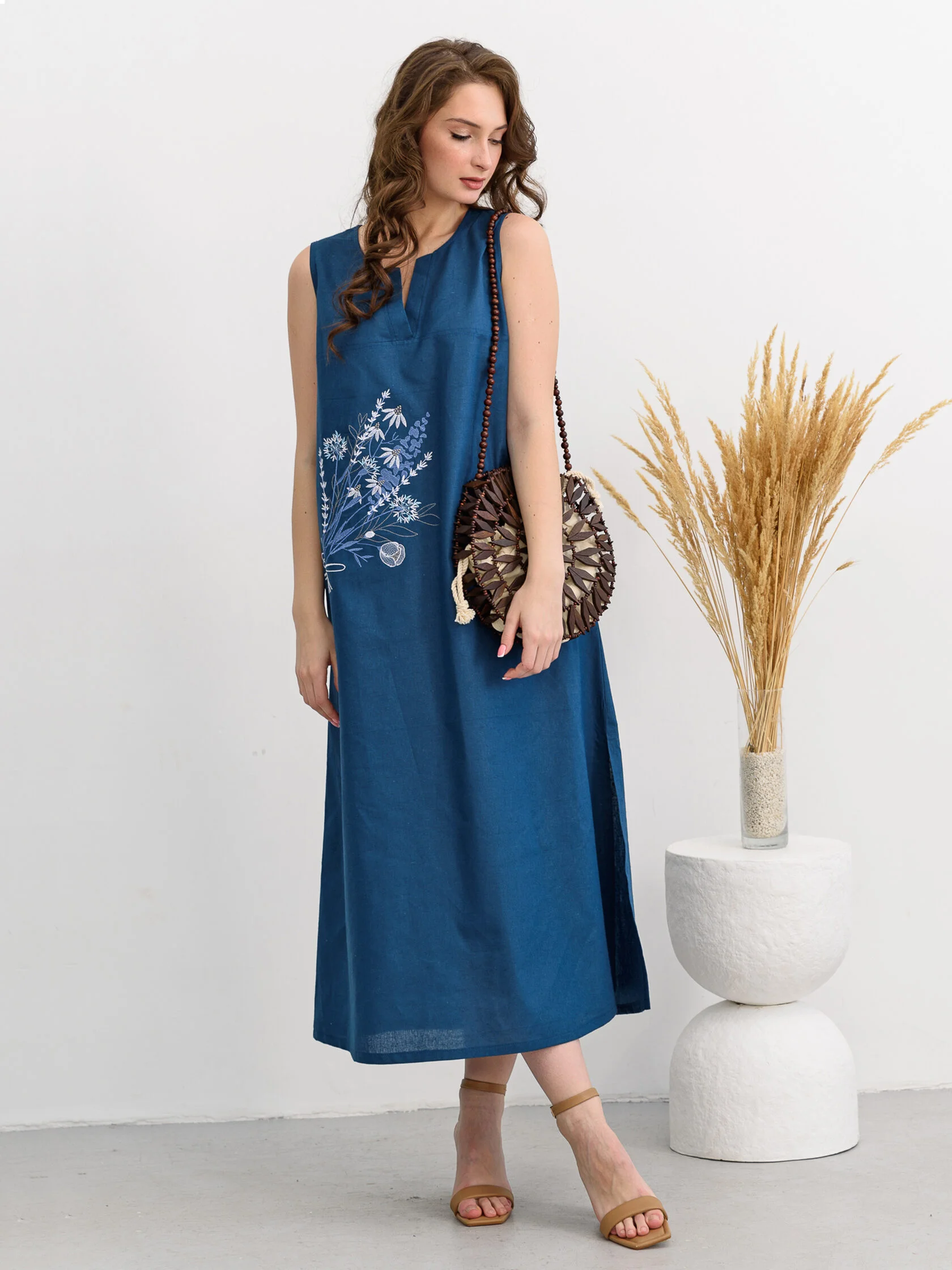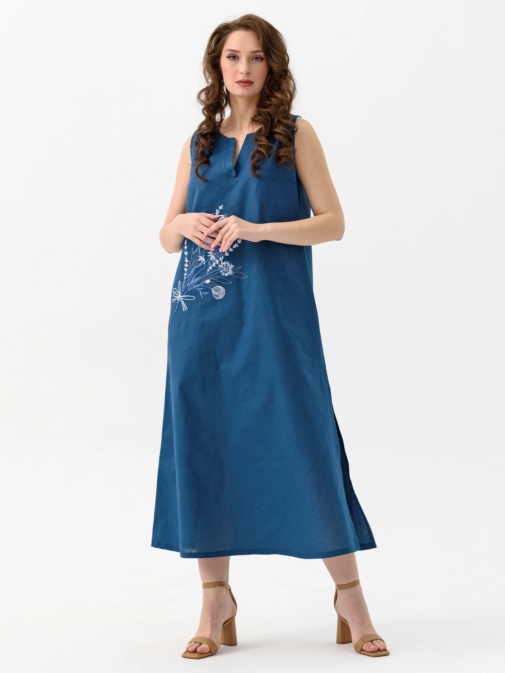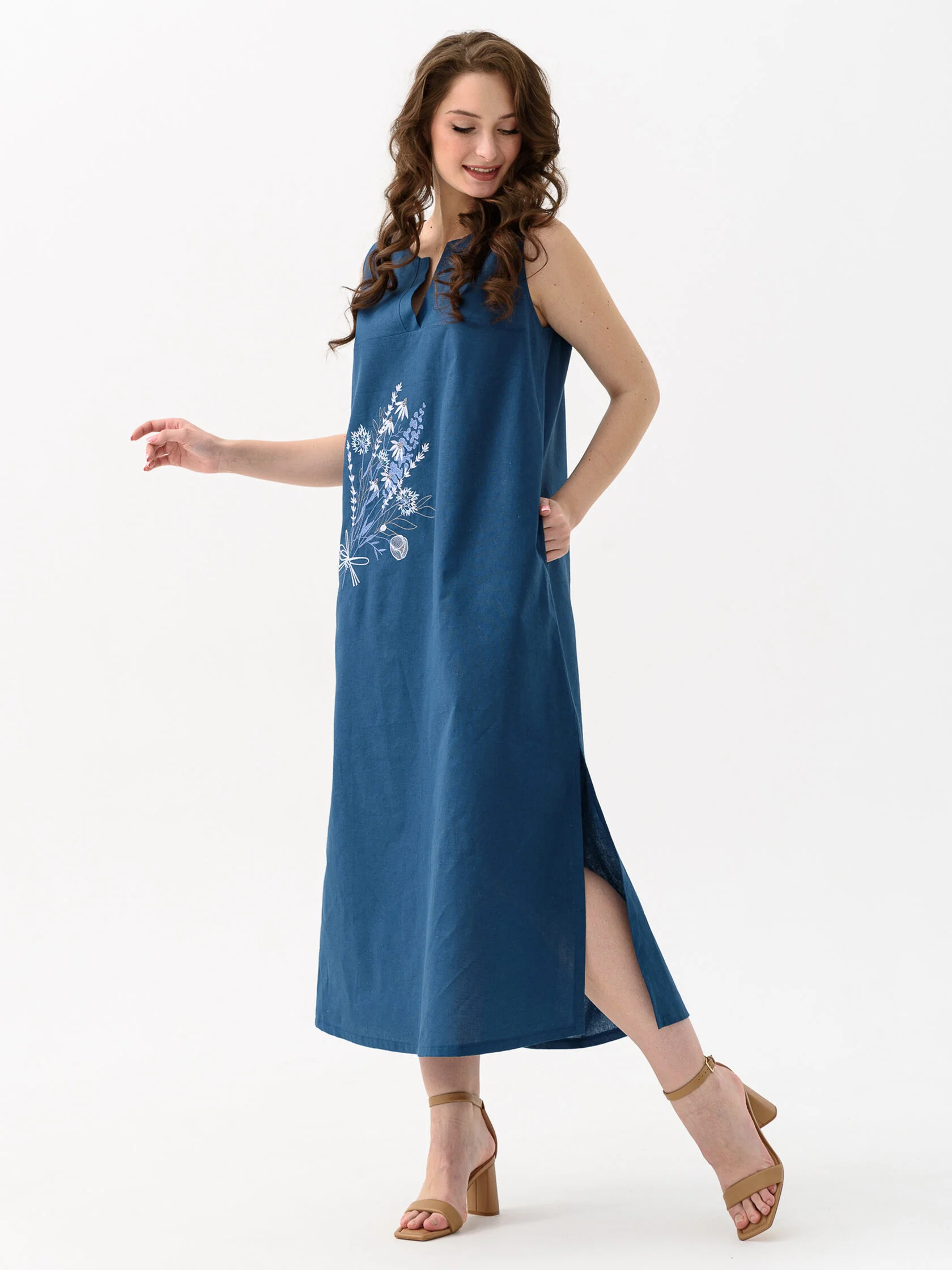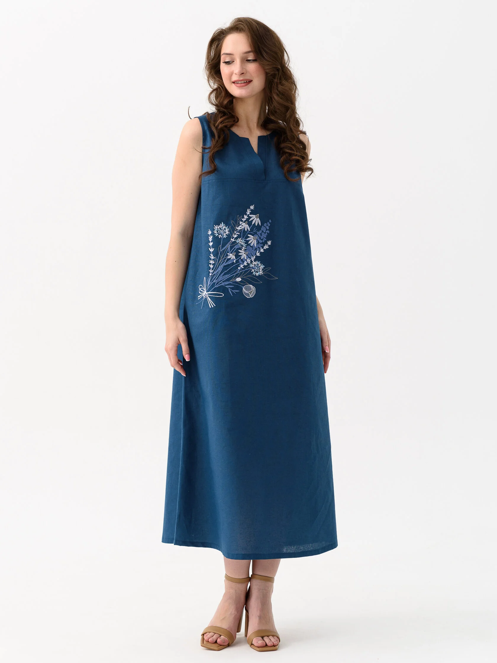 арт. Сарафан женский "Льняное лето", 46, индиго